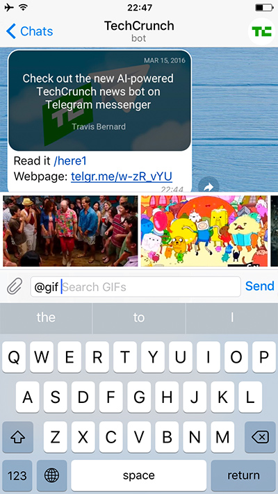 Integrate with other services. A bot can enrich Telegram chats with content from external services.
